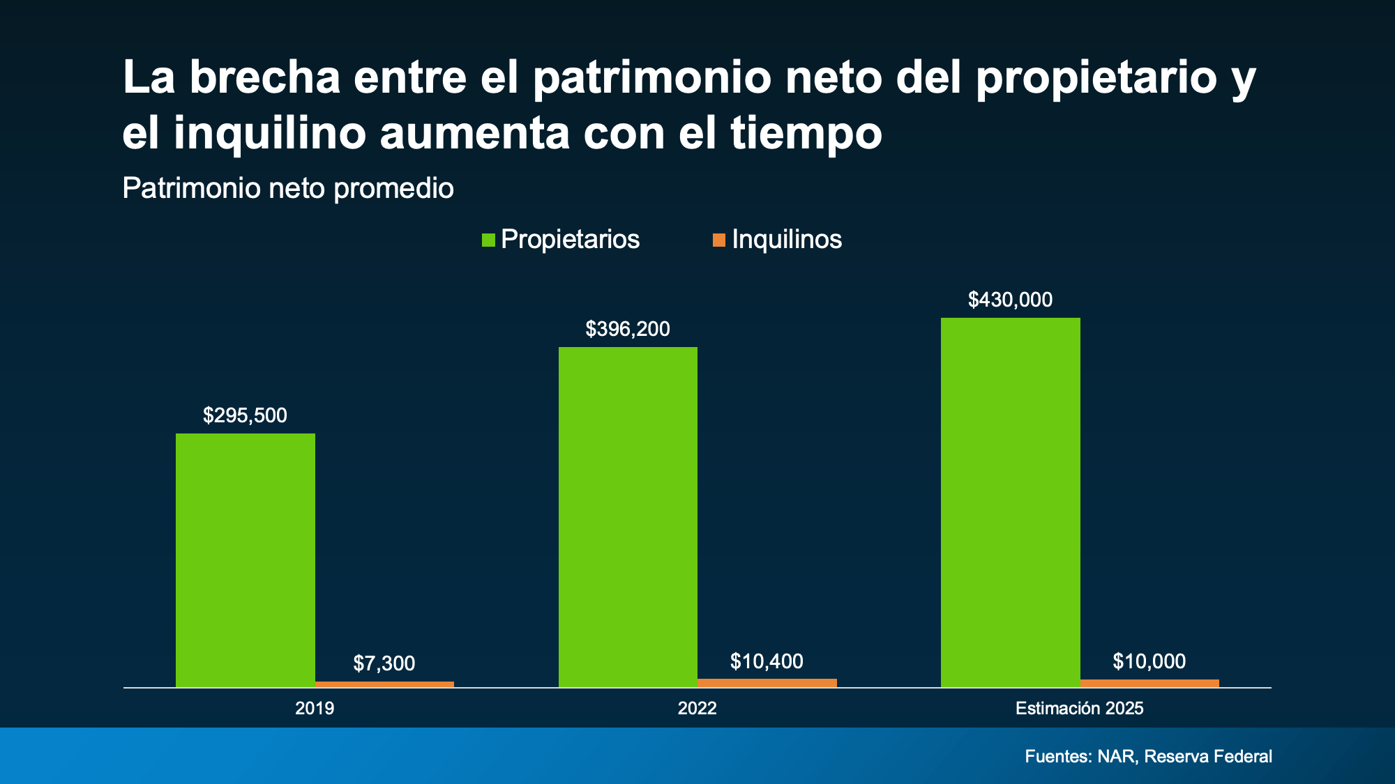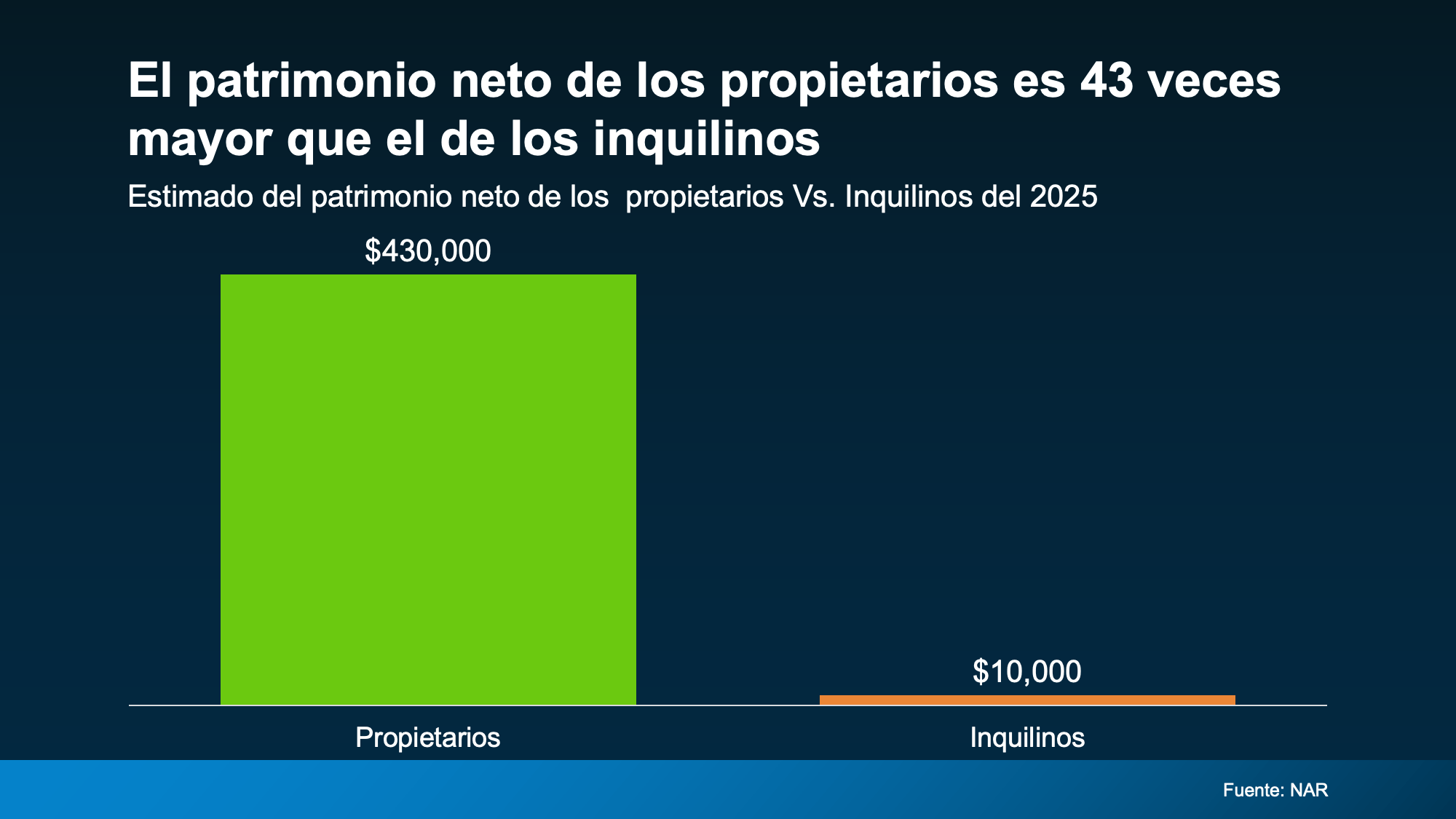 Actualmente, la Asociación Nacional de Realtors (NAR, por sus siglas en inglés) dice que el patrimonio neto medio de un propietario es 43 veces mayor que el de un inquilino: