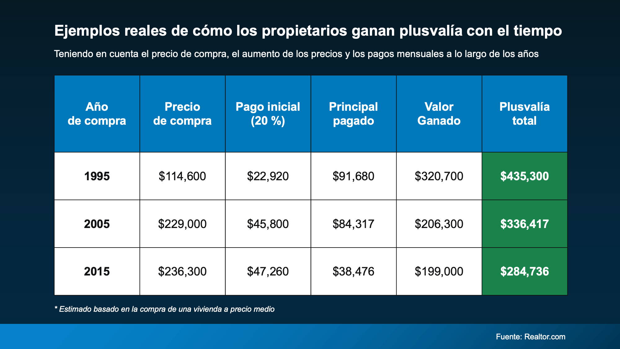 • ¿En 2015? Incluso en ese periodo más corto de 10 años, muchos propietarios ya han acumulado casi $285.000 dólares en plusvalía.